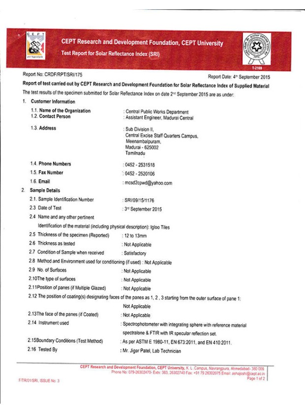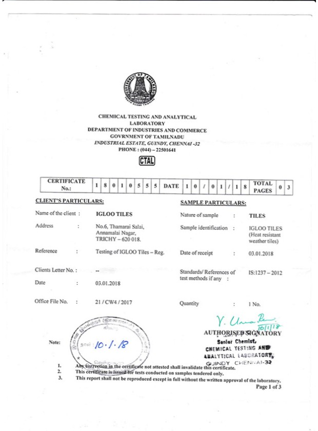 Our Company “Igloo Tiles” was formed in 2009 and has attained enormous growth by supplying all across south regions of INDIA and still counting. Our company is head quartered in Tirchy and has been in this field experience around 15 years of various new technology products related to construction. Till date we have supplied around two lakh square meters.